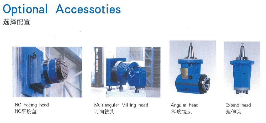 The machine can work in the way of five axes moving Simultaneously.The machine can complete . in one set -up .milling , boring , dillig , taping, And curve surface and integral product of high science and technology with high accuracy and excellent rigidity , suitable for machining large , heavy or super heavy complicated parts if equipped with vertical, universal, extended milling heads and a CNC rotary table. ftting wider application rage.